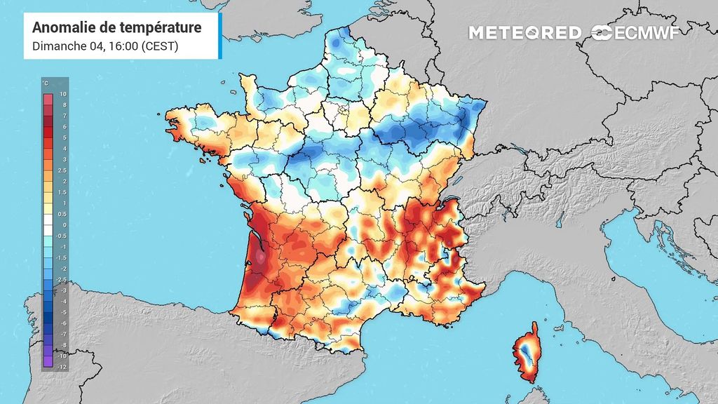 Exposé au vent, le ressenti sera souvent inférieur à 8-10 sur la Bretagne, la Normandie et près des côtes de la Manche, mais sous-abri, attendez-vous à 12°C à Mulhouse, 13°C à Brest et Caen, 14°C à Besançon et Grenoble, 15°C à Lille, Nantes et Clermont-Ferrand, 16°C à Paris et Strasbourg, 17°C à Nancy, Toulouse et Biarritz, 18°C à Bordeaux, 19°C à Agen, 20°C à Marseille, 24°C à Bastia.