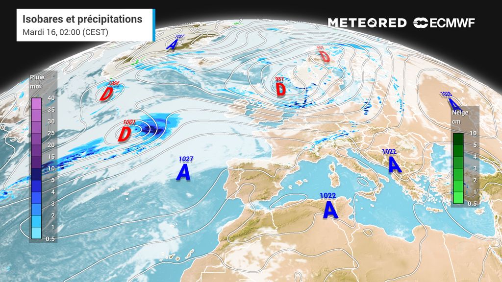 Sous un ciel bien gris et un vent de Sud-Ouest à 50 km/h en rafales, attendez-vous à un arrosage modéré, 5 à 10 litres d'eau par m². Dans les autres régions, le ciel sera très chargé en cette matinée, avec déjà quelques ondées locales vers la Bretagne, la Normandie et la Bourgogne.