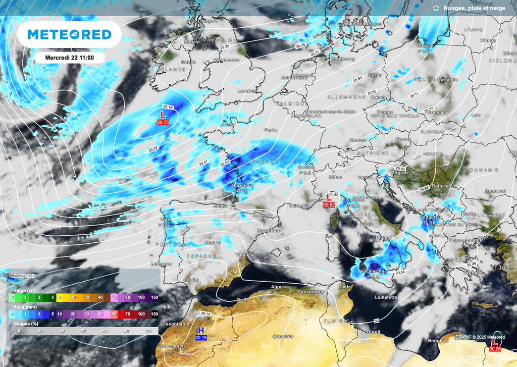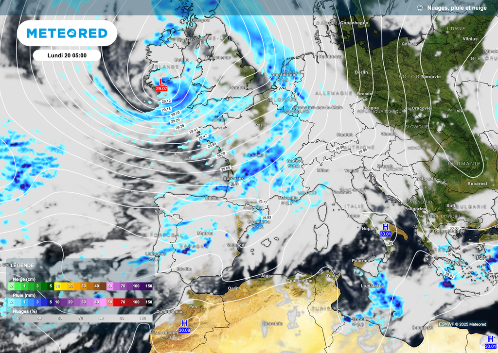 En effet, d'ici le prochain week-end, cette vaste zone dépressionnaire va circuler plus à l'est. Un flux de secteur nord-ouest à nord devrait se mettre en place. Son intensité est encore incertaine mais suffisante pour faire reculer les températures. Restez connectés sur Tameteo.com pour suivre les évolutions météo !