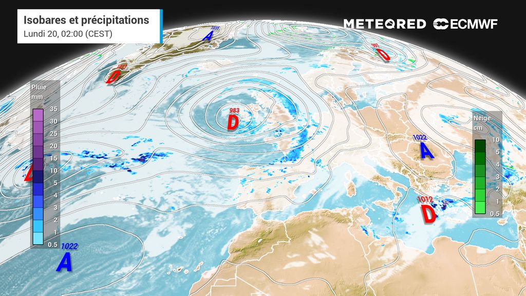 Cette nouvelle dépression véhiculera aussi une perturbation très pluvieuse. Ces intempéries pourront entraîner des accumulations de pluie parfois conséquentes. Une douceur sera aussi présente, tout du moins dans un premier temps, ce en raison d'un flux de secteur sud-ouest à ouest.