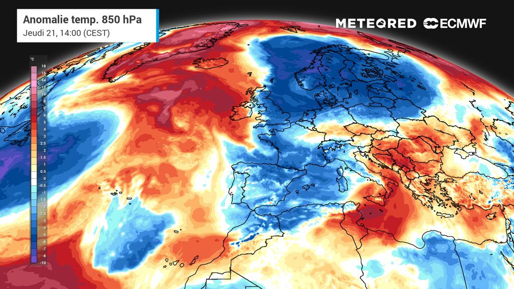 La carte ci-dessus montre que les cumuls pourraient localement approcher, voire dépasser, les 50 litres d’eau au mètre carré d’ici jeudi soir selon le modèle européen. Il faudra donc surveiller le risque de ruissellement sous les orages les plus forts.