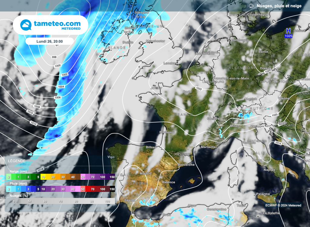 Si l'on se penche sur les dernières sorties numériques, on constate que les conditions météo sont plutôt anticycloniques sur l'hexagone. En effet, selon le modèle européen ECMWF, un anticyclone devrait concerner une grande partie de l'Europe. Résultat, l'ensoleillement devrait être bon.